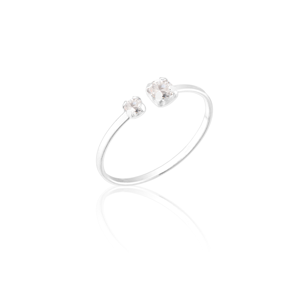O Anel Regulável Ponto de Luz em Prata 925 traz um design moderno e delicado, perfeito para mulheres que amam joias únicas e versáteis. Com seu formato aberto, o anel possui uma zircônia cristal maior em uma ponta e uma zircônia menor na outra, criando um contraste elegante e cheio de personalidade.