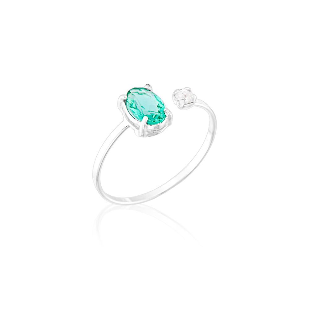 O Anel Regulável Ponto de Luz em Prata 925 é uma joia que une sofisticação e versatilidade. Com design aberto e moderno, apresenta uma pedra Turmalina Paraíba Glass maior em uma ponta e uma zircônia cristal menor na outra, criando um contraste elegante e cheio de personalidade.