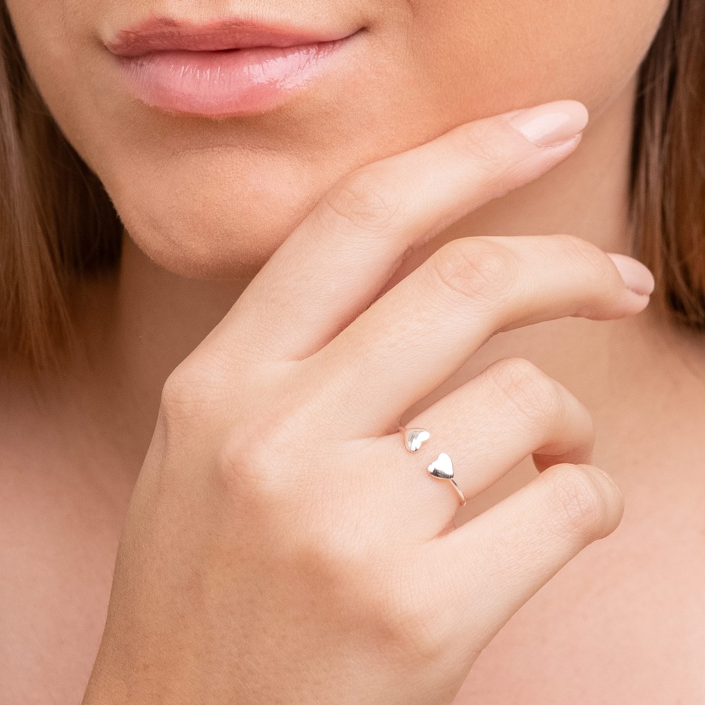 O Anel Regulável Coração em Prata 925 é uma joia delicada e encantadora, feita para simbolizar sentimentos verdadeiros com muito estilo. Seu design aberto traz um coração em cada extremidade, criando um visual romântico e contemporâneo ao mesmo tempo.