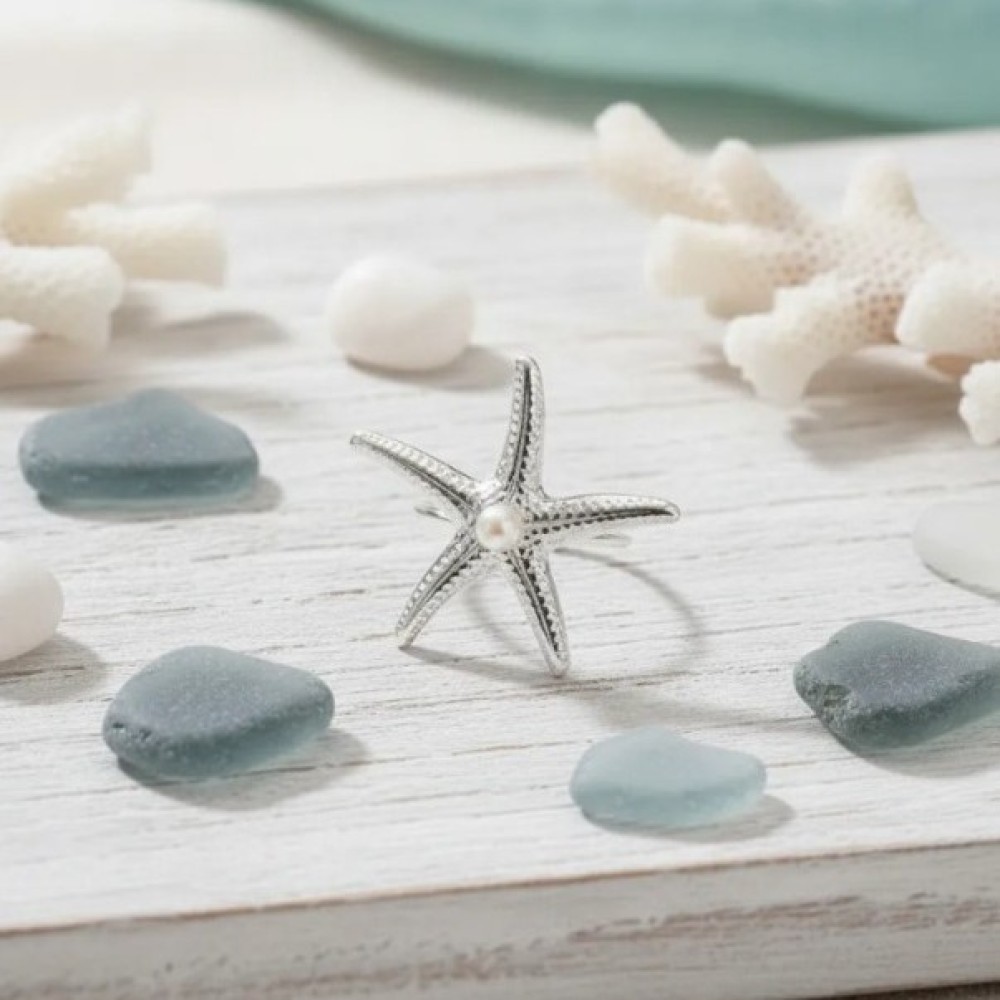 A combinação da estrela do mar com a pérola cria uma peça leve e elegante, perfeita para quem busca acessórios femininos com toque natural e romântico. Seu modelo regulável proporciona ajuste confortável, permitindo o uso em diferentes tamanhos de dedo com praticidade.