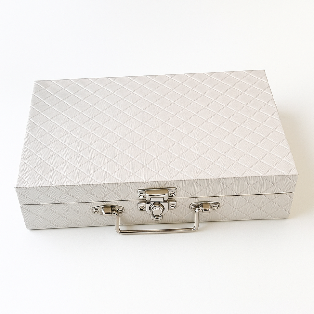 Nossa Maleta P é compacta, leve e perfeita para quem está começando ou deseja apresentar suas joias com charme e funcionalidade.