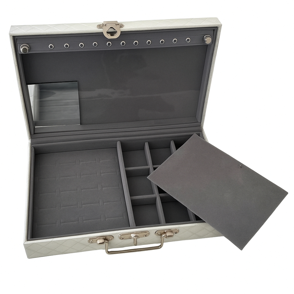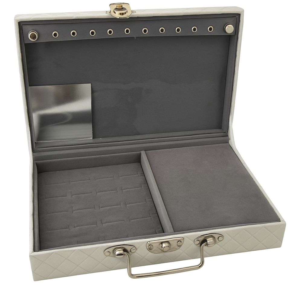 | Possui divisórias internas ideais para brincos, correntes e anéis, mantendo cada peça no lugar certo. |